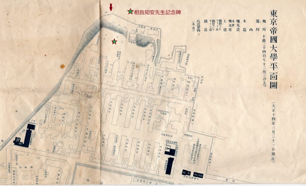 ・・・・・・・・・・・・・・・ところが,そこへ行ってから二年足らずであったが,私が朝出勤してみると御殿の周囲の枯芝がよほど焼けている。どうしたかと糺すと,宿直の小使が,休みにくる病院の患者が煙草を吸って燃やしたのだと言うのです。これを聞いて実に危いことだ。どうかしてもっと安全な所へ行きたいと思っている間に,医学部の古い建物,これは時計台と言っておって,木造建築の西洋風の建物で,この種の建物としては最も早い。大きいものであったが,これが取り払われるということになった。この建物はちょうど,マッチ箱を二つ集めたようなもので,真中に廊下を挟んで北側と南側に建物があった。それを真中の廊下から二つに割き,一半は赤門の所へ持って来て,たしか今は会計課か営繕課かになっておりますが,他の一半はこの一ツ橋へ持って来て学士会館にしたが,これはその後焼けてしまった。それで我々は赤門の所へ持って来た建物へ引越して,自由にかなり広く使えることになった。この建物と外部の道路は隔たってはありますけれども,よほど近かった。・・・・・・・