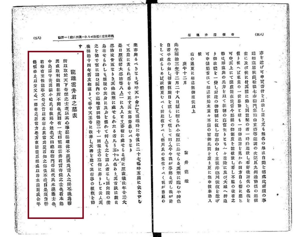 「龍雄雲井君之墓表」(隷額 鴻雪瓜(おおとり・せっそう)[東京] 撰文 人見寧(ひとみ・やすし)[静岡])