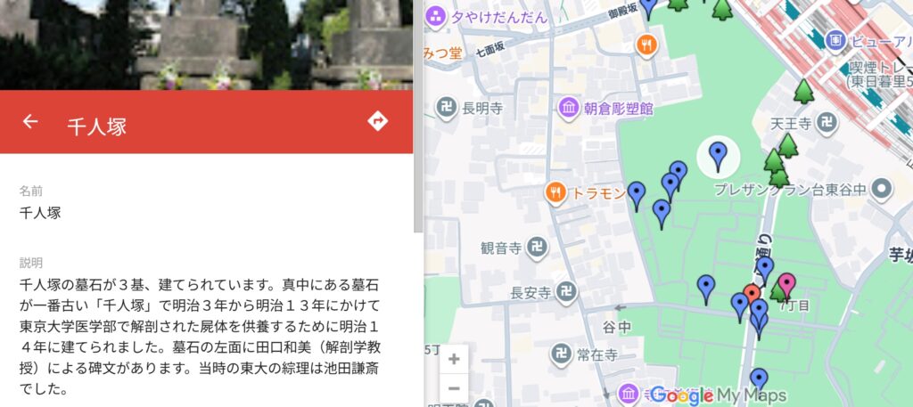 谷中霊園掃苔録(Goole My Map)(堀江幸司作成)千人塚