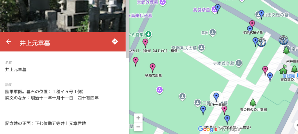 🌲文献を調べていたところ、井上元章の墓所は、この染井霊園のほかに、高知県高岡郡佐川町乗台寺にもあることがわかりました。