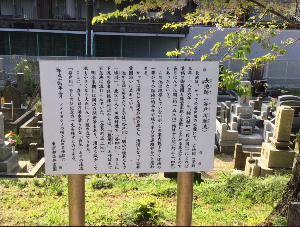 🌲染井霊園のある場所は、旧播州林田藩(兵庫県)建部家下屋敷跡で、長池からの清流にそって建部家花屋敷(3000坪)もありました。駒込染井は、いまでは考えられないほど、自然豊かな百花繚乱の地でした。
